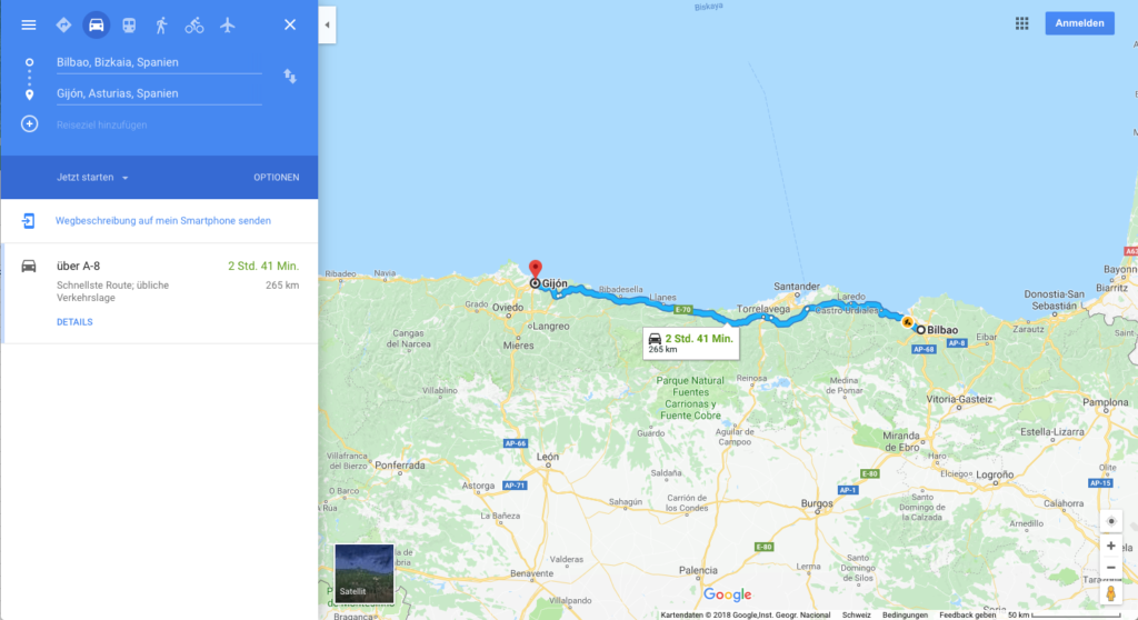 1. Etappe: Bilbao nach Gijon Von René Moser | Dezember 16, 2018 0 Kommentare Reise: Ankunft: 27. Dez. 2017; Abreise: 29. Dez. 2017Strecke: 265 km, 2h 44′ Wissenswertes zu Gijon: Link zu Wikipedia Link zum Parador Impressionen